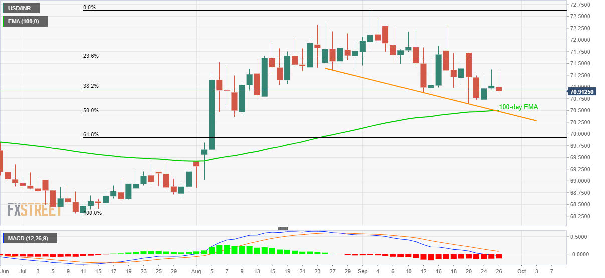 USD/INR technical analysis: Bearish MACD, lower highs drive sellers to 70.50/45 confluence