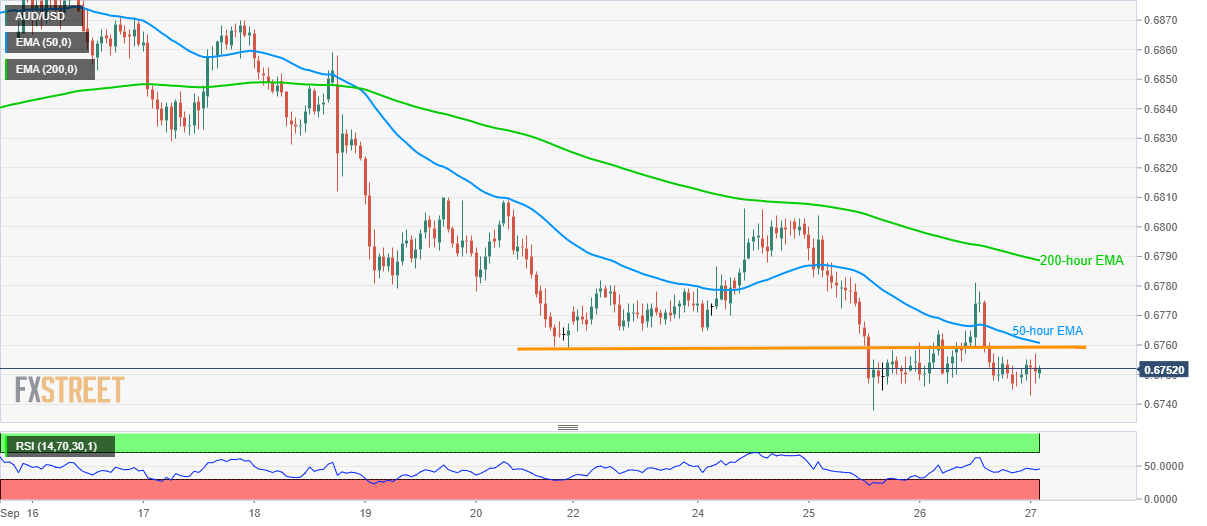Meanwhile, pair’s run-up beyond 0.6760 could please buyers with 0.6780 before confronting 200-hour EMA level close to 0.6790.