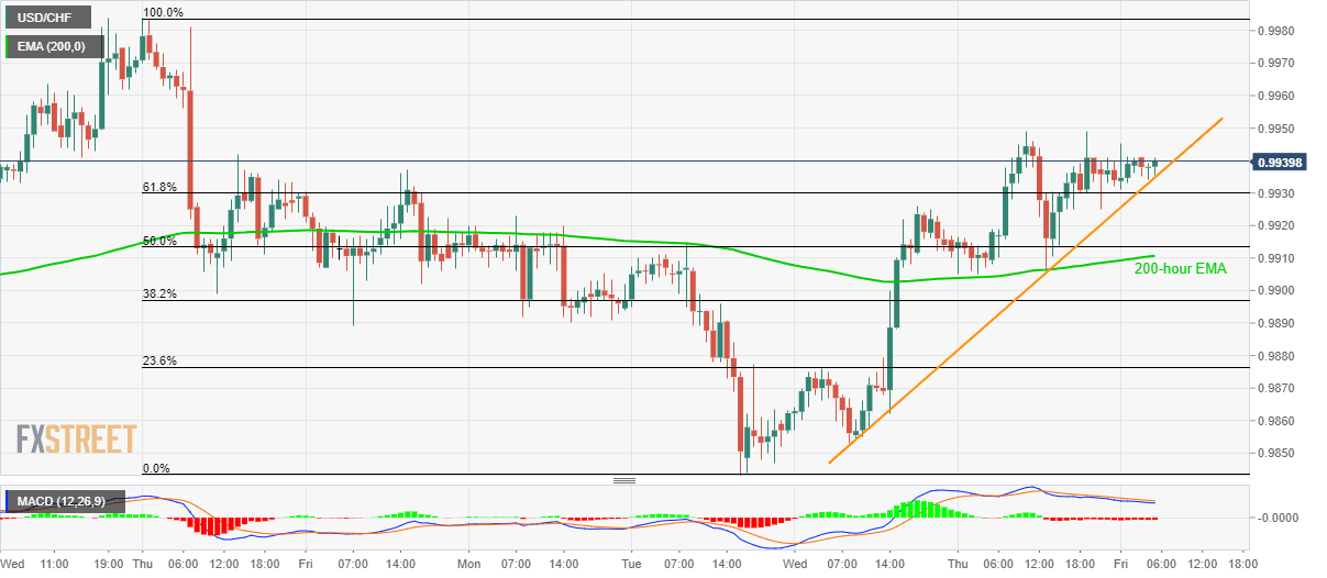 USD/CHF has been under pressure off-late while taking rounds to 0.9940 ahead of the European session on Friday.
