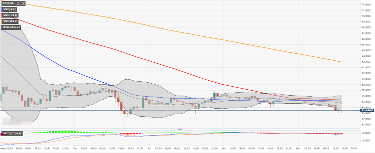 Litecoin is changing hands at $53.23. The coin has been sliding down since the beginning of Sunday amid growing bearish sentiments in the market. While LTC/USD managed to recover from the intraday low under $53.00, it is still down over 4% since the beginning of the day and 3.5% on a day-on-day basis.