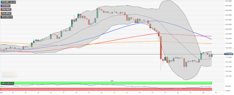 The second-largest cryptocurrency with the current market capitalization of $18.92 billion has been on recovery track since Friday. ETH/USD climbed above $170.00 and hit $177.26 before retreating to $175.00 by the time of writing.