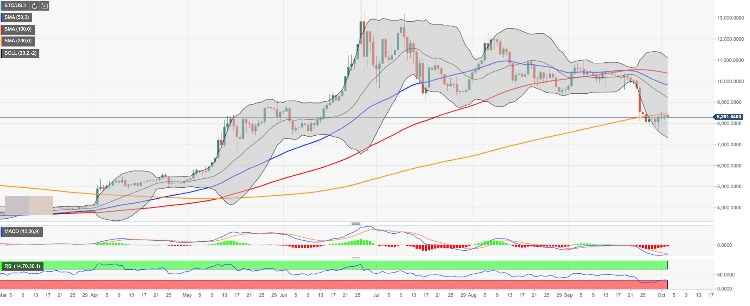 On a daily chart, BTC/USD recovery is capped by SMA200 (Simple Moving Average). The coin dropped below this line on September 26 – for the first time since February. Several attempts to break higher failed to yield results. From the technical perspective, this development may be interpreted as a bearish signal It confirms the lack of buying interest at this stage and makes the coin vulnerable to further losses.