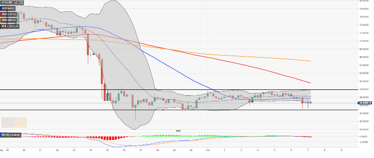 On the downside, it is advisable to keep an eye at $53.00 followed by the lower boundary of the above-said channel at $52.80. Litecoin bears made several attempts to engineer a sustainable move below this handle; however, fresh buying interest helped to trigger a recovery. Once it is broken, the sell-off is likely to gain traction with the next focus on $50.39 (September 26 low) and psychological $50.00.