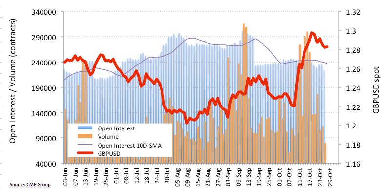 Open interest in GBP futures markets shrunk by around 10.8K contracts on Monday following two consecutive daily builds. In the same line, volume went down by around 33.4K contracts, according to flash data from CME Group.