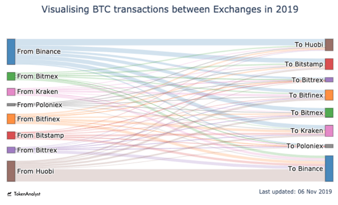 1)Huobi wallets sent the most $BTC to Binance wallets in 2019