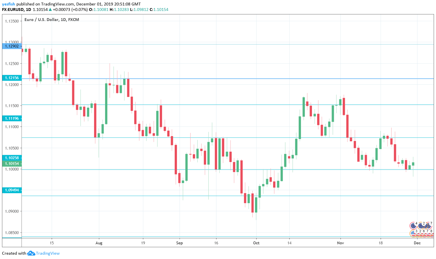EUR/USD daily chart with support and resistance lines on it. Click to enlarge: