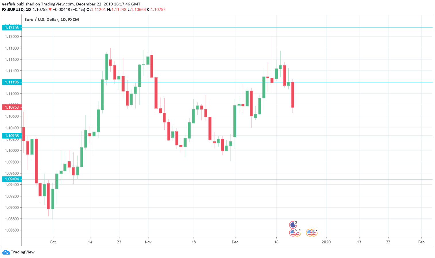 EUR/USD daily chart with support and resistance lines on it. Click to enlarge: