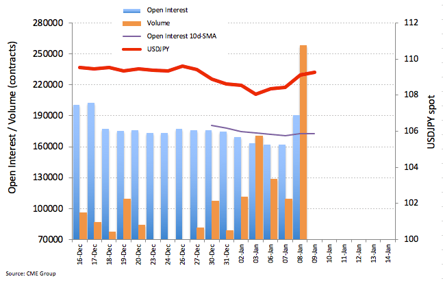 Easing geopolitical concerns boosted the outflows from the Japanese safe haven on the back of increasing open interest and volume, allowing for further upside in USD/JPY and opening the door for a potential move to the psychological 110.00 handle.