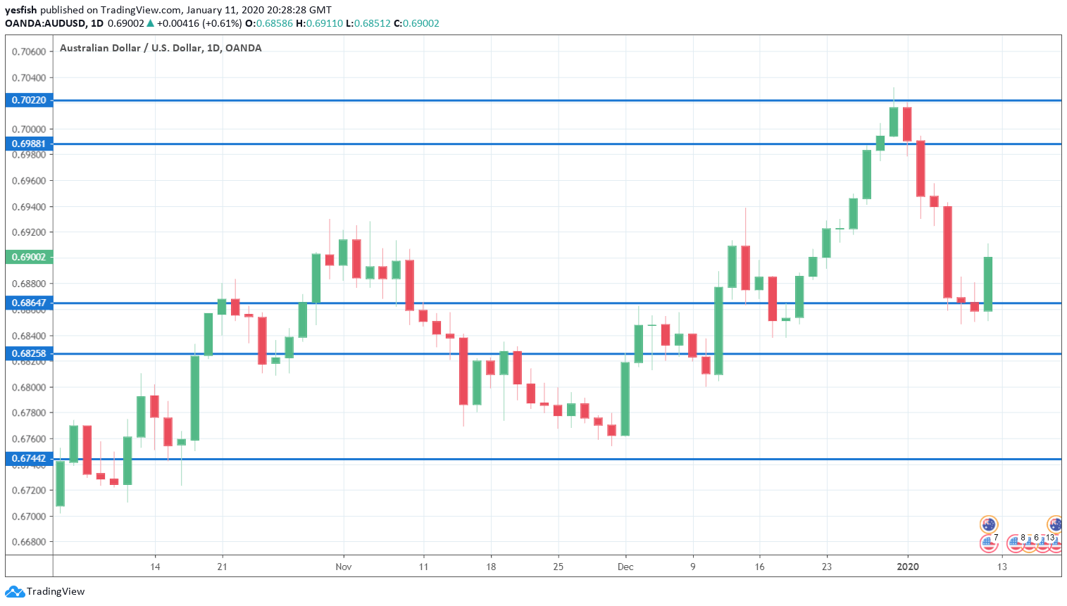 0.6960 has some breathing room in resistance, following losses by AUD/USD last week.