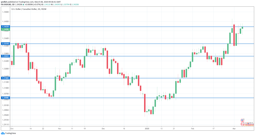 USD/CAD daily chart with support and resistance lines on it. Click to enlarge: