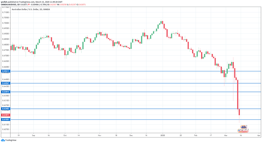 - RBA Monetary Policy Meeting Minutes: Tuesday, 0:30. The minutes provide details of the bank’s policy meeting earlier in March. At that meeting, the RBA lowered the benchmark rate from 0.75% to 0.50%. A pessimistic assessment by policymakers in the minutes could weigh on the Aussie.