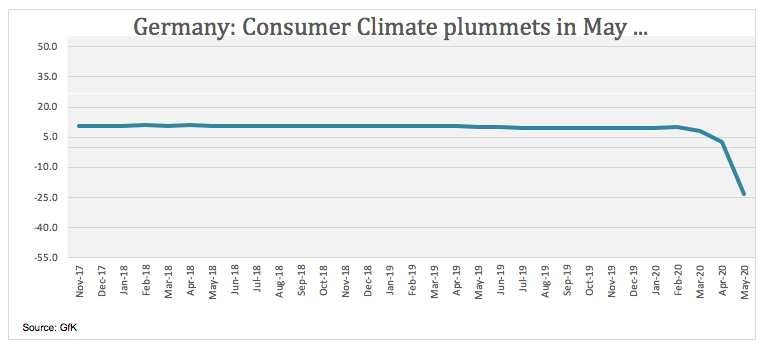 Also reflecting the poor morale in Germany, the GfK’s Consumer Climate plummeted to -23.4 for the month of May (from April’s 2.7).