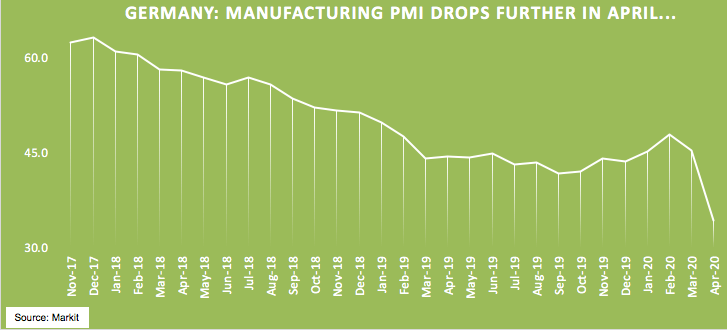 In fact, PMIs in Germany, France and the broader Euroland came in well short of expectations for the month of April, reflecting the continuation of the coronavirus crisis and the initial effects of the lockdown in economies of the Old Continent.