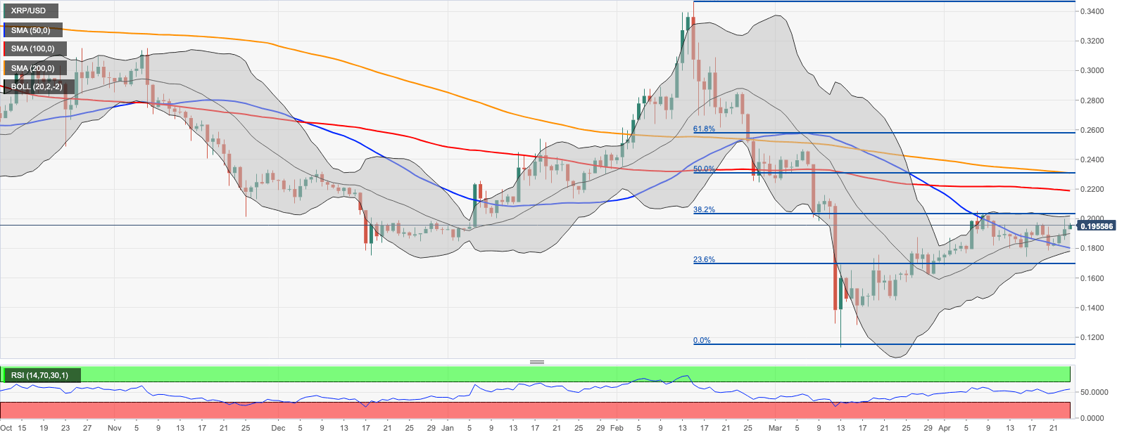 - XRP/USD recovery is limited by psychological resistance of $0.2000.