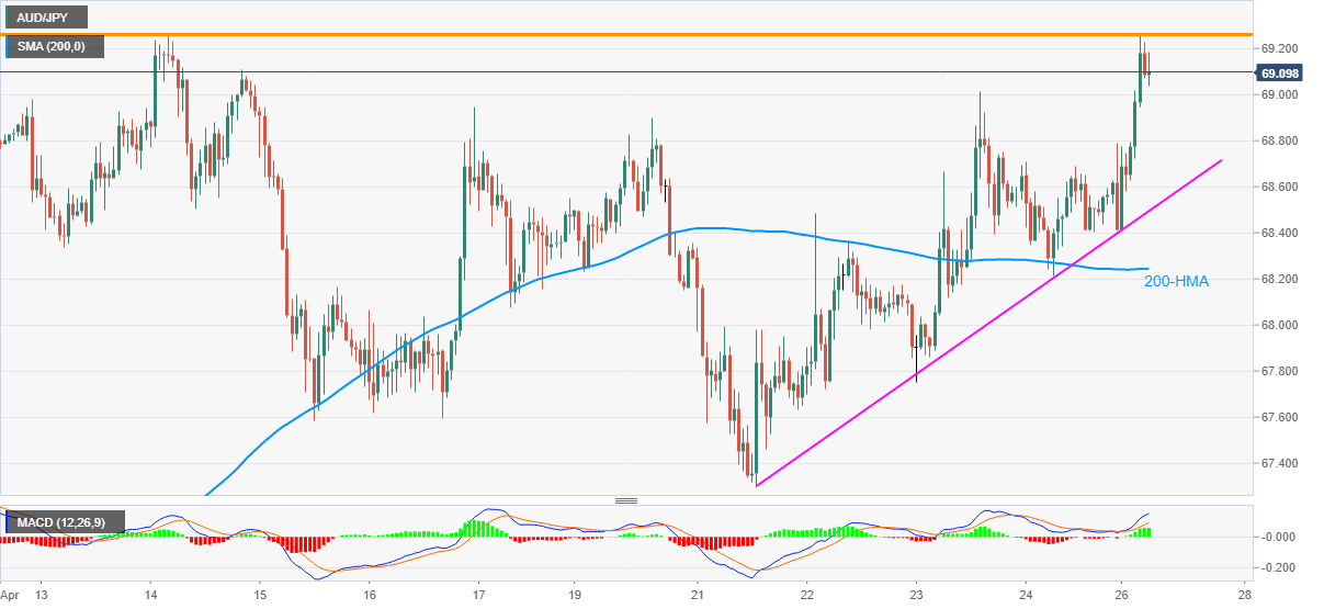 Alternatively, an upside clearance of 69.30 enables the bulls to aim for 70.00 round-figure whereas March month top near 71.52 could lure the buyers next.