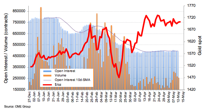 Investors increased their open interest positions in gold futures markets by almost 2.4K contracts on Tuesday, reversing at the same time two consecutive daily pullbacks according to preliminary readings from CME Group. Volume, on the other hand, extended the downtrend and shrunk for the third straight session, this time by nearly 10.4K contracts.