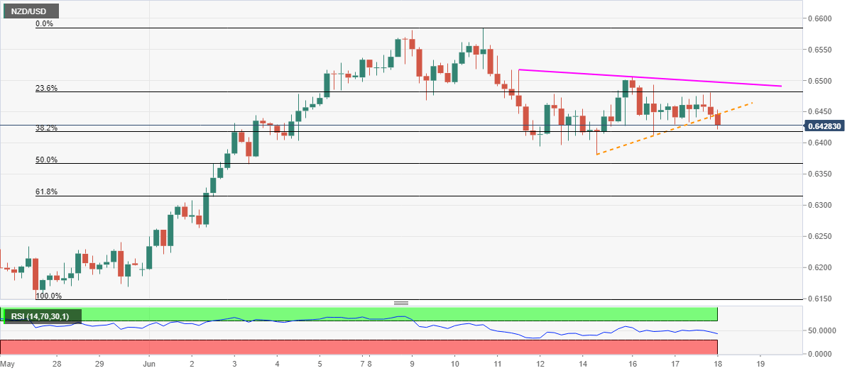 - NZD/USD stretches pullback moves from 0.6481 to revisit Tuesday’s lows.