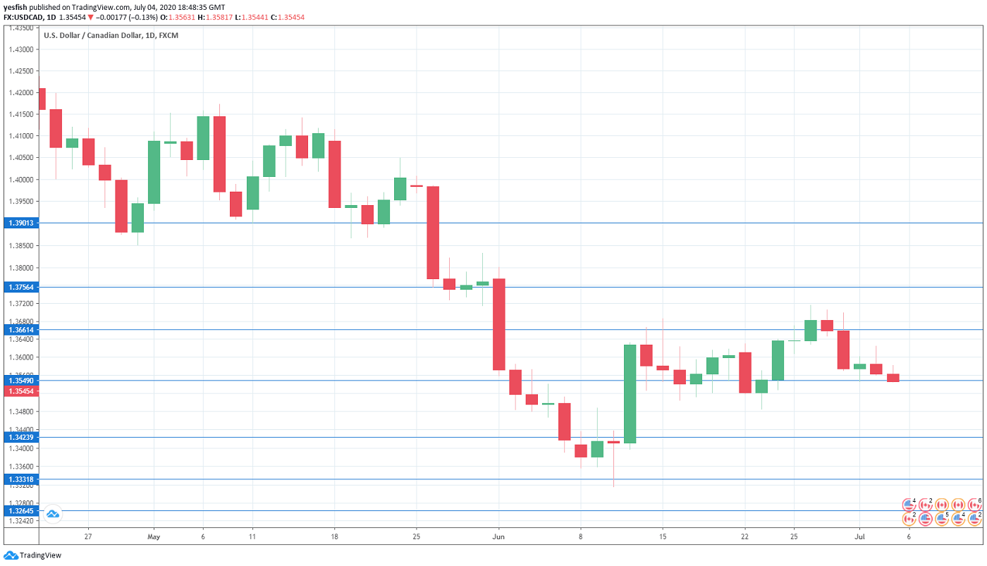 - Employment Report: Friday, 13:30. Canada’s economy rebounded from a loss of over 1.99 million jobs in April, with a gain of 289.6 thousand in May. Analysts are expecting better numbers in June, with a forecast of 550.0 thousand. The unemployment rate climbed from 13.0% to 13.7% in May, but this beat the forecast of 15.0%. The estimate for June is 12.5 percent.