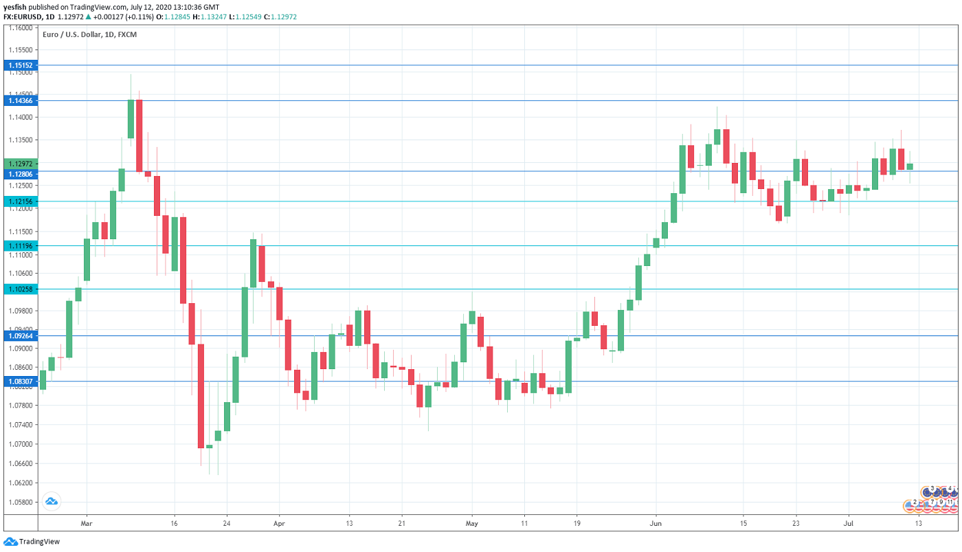 EUR/USD daily chart with support and resistance lines on it. Click to enlarge: