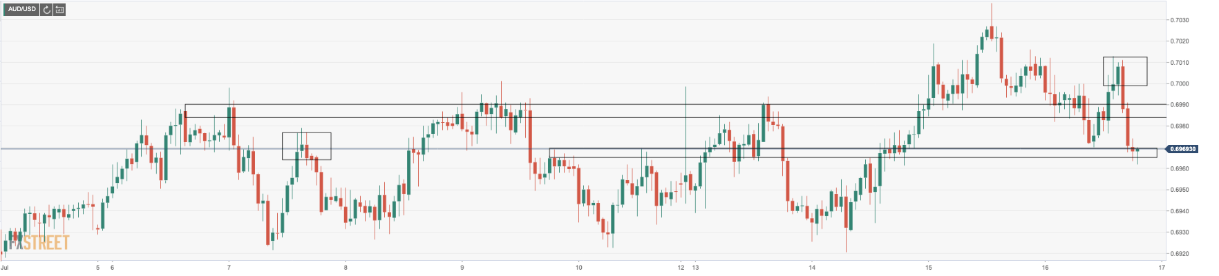 AUD/USD is currently trading at 0.6970 between a range of between 0.6968 and 0.7012.
