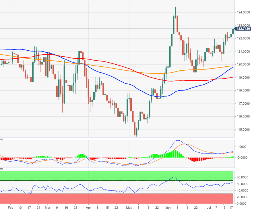 Extra upside momentum is now expected to target the 2020 peaks beyond the 124.00 mark in the short-term horizon. Further up emerges the May 2019 high at 125.23 (May 1).