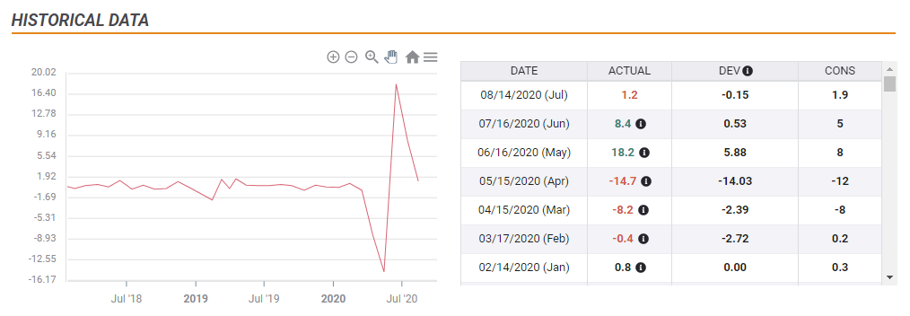 V-shaped recovery – that is what retail sales figures for July reflect for the US economy, and that was already seen in June. Overall expenditure increased by 1.2% last month, while below 1.9% expected, it was more than compensated by an upward revision to June’s figures.