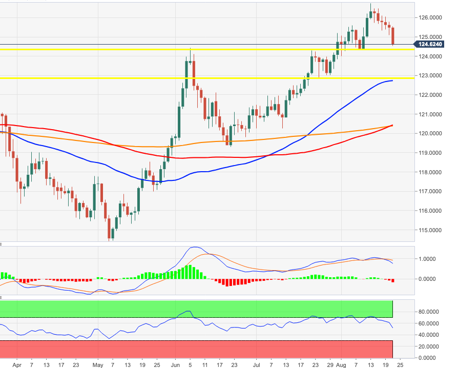 Further downside remains well on the table and is expected to initially test the 124.30/25 band, or last week’s low. Further south emerges the key contention area around 122.90.