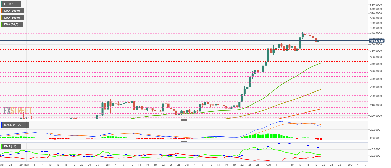 The ETH/USD pair is currently trading at $414.1 as it attempts to keep up with its Altcoin counterparts.