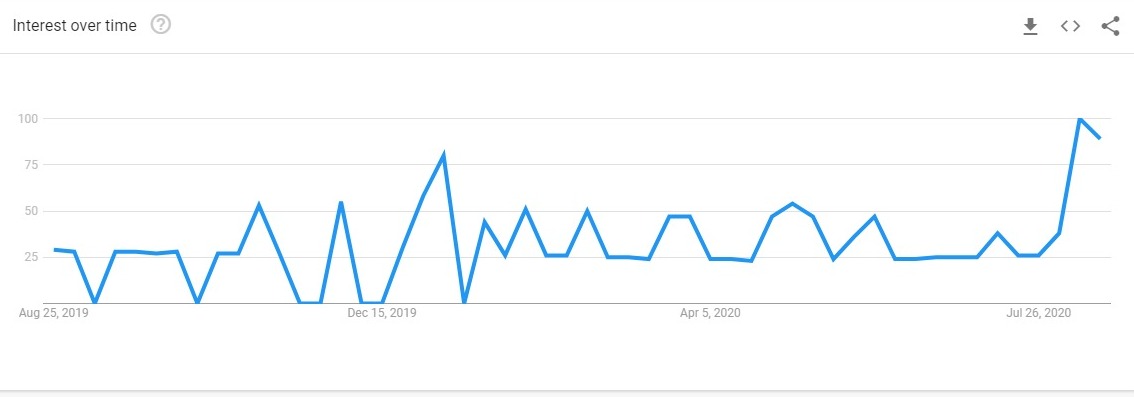 As you can see, at the end of July it reached the highest level of the last 12 months. The graph is exciting because this type of search is typical of someone who does not yet have experience investing in the Crypto Segment. New investors and fresh money without the vital support of the big media.