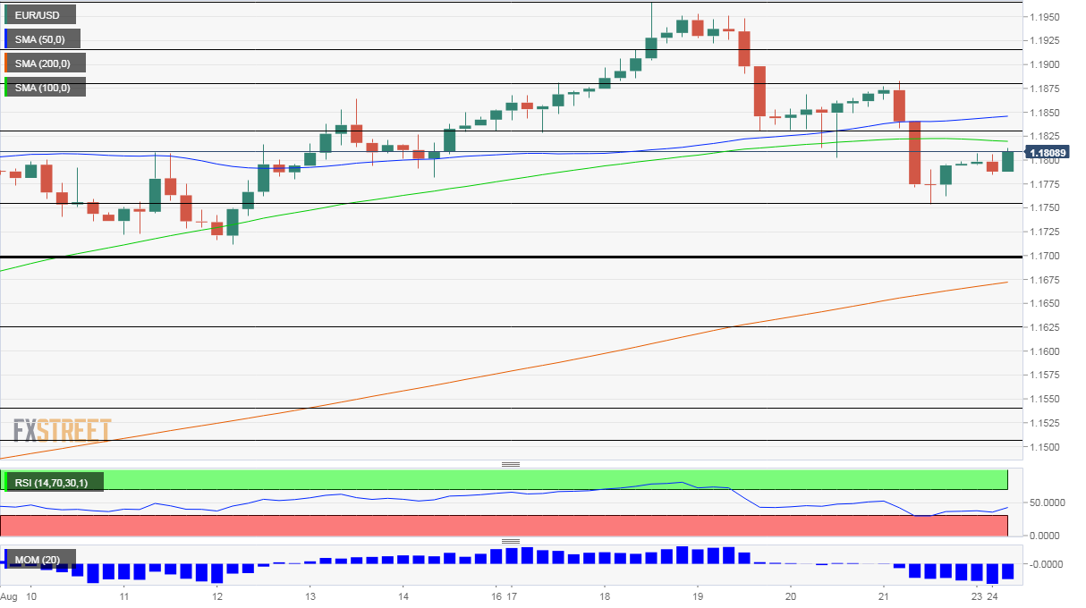- EUR/USD is edging toward 1.18 amid hopes for COVID-19 solutions, yet held by European developments.