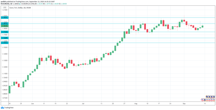 EUR/USD daily chart with support and resistance lines on it. Click to enlarge: