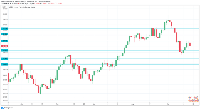 GBP/USD daily graph with resistance and support lines on it. Click to enlarge: