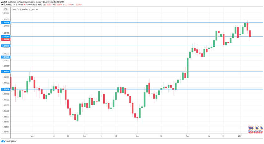 The US dollar has been on the defensive and with the Democrats now in control of all three branches of the federal government, we’re likely to see further easing and stimulus, which could weigh on the greenback.