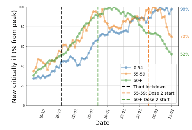 Updated data from the country of nine million which jabbed over 42% of its population have shown that among those aged 60 or older, there were 64% fewer cases, 48% fewer critically ill, and 50% fewer deaths. Similar downtrends were seen among those aged 55 to 59 who were next in line.
