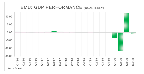 Additionally, another revision of Q4 GDP figures in the broader euro area now sees the economy contracting 0.6% QoQ, a tad better than the previous 0.7% drop predicted. On an annualized basis, the region is forecast to contract 5.0%.
