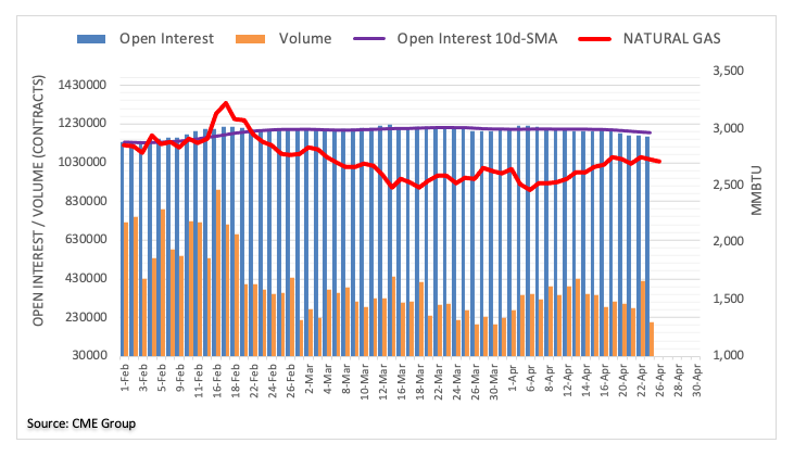 CME Group’s advanced prints for Natural Gas futures markets noted traders trimmed their open interest positions for the fifth consecutive session on Friday, this time by around 3.7K contracts. Volume followed suit and shrunk markedly by around 213.2K contracts, the largest single day drop since March 1.