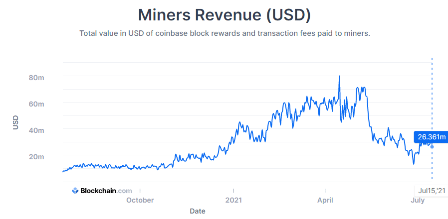 - Miner revenue is expected to rise toward the end of 2021 as miners seek alternative bases.