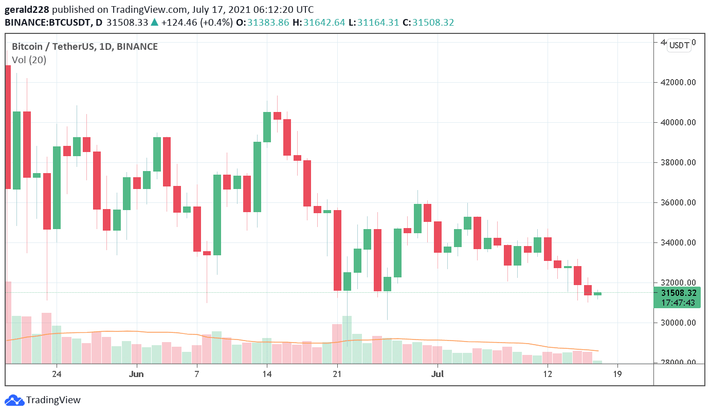 The Bitcoin price seemed to have found a bottom at around $31000-$31500 although there seems to be some slight bullish movement this morning. One could argue that it would be a good opportunity to get in at this price before a leg up to the $35,000 mark begins. If you haven’t yet bought some Bitcoin, check out this How To Buy Cryptocurrency Beginners Guide.