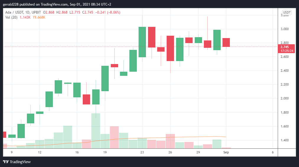 Although there’s still some uncertainty in the crypto market, it seems that the Cardano price is set for greater things as it pauses for a slight breather. ADA has been on an impressive ascendant since the July 20 low of $1.04 and has appreciated by almost 200% since that level. This is certainly one of the best price performances over the past month.
