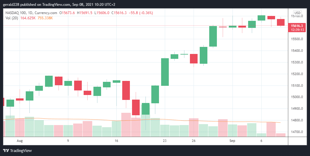 Fed Chair Jerome Powell has still not given any indication on when the economic tapering of support is to start. The rather dismal Non-Farm Payroll Jobs Report of last Friday has not moved the market so much and after a short descent on Friday, the Nasdaq price recovered well in the past two sessions to register another all-time high.