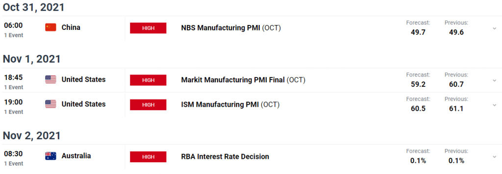 The NBS PMIs for October will be released by China next week. It is expected that the manufacturing index will be 52.9 while the services index will be 49.7. In addition, Australia will publish the official AIG Manufacturing Index for September, which was previously 51.6.