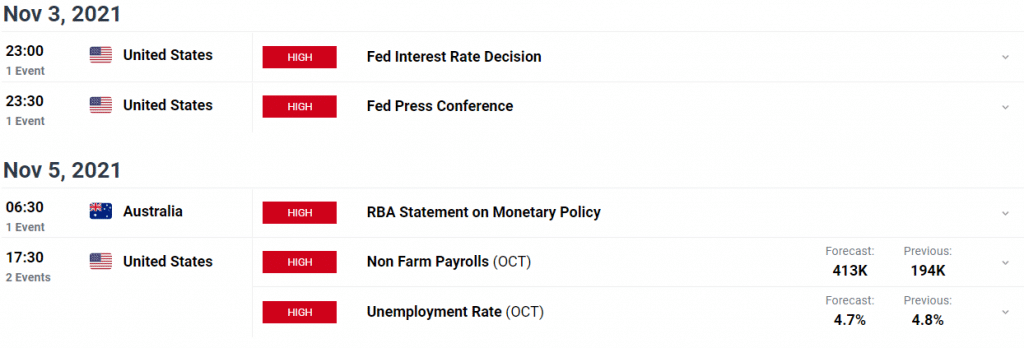 Key events/data for AUD/USD next week