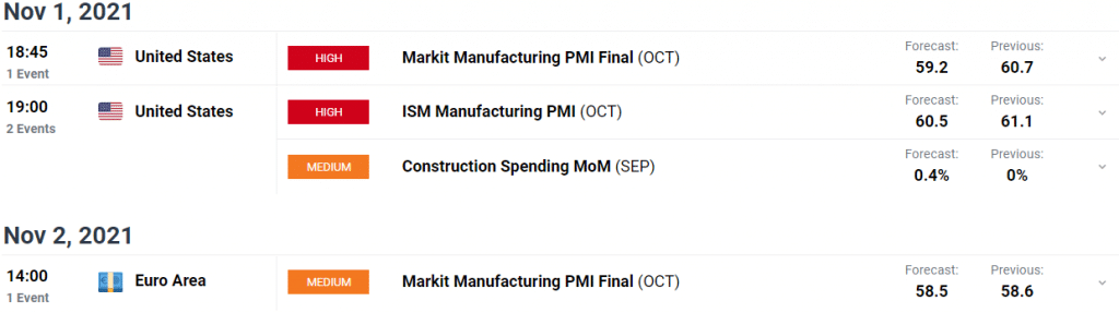 Macroeconomic releases will be plentiful during the first week of November. The US will publish official data on the ISM PMI on Wednesday, with the industrial index expected at 60.4 and the services index at 61.5, slightly below September. In addition, the US Federal Reserve will announce its monetary policy decision on Wednesday.