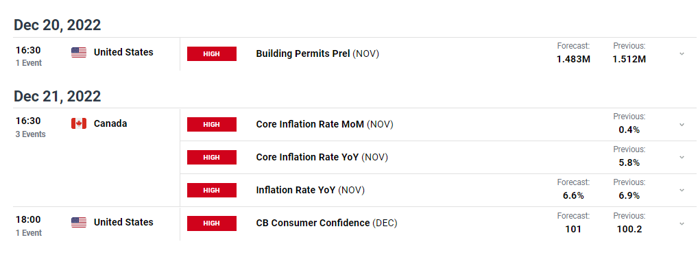 For November, investors expect the inflation rate to drop to 6.6%. Anything higher or lower might cause some volatility for USD/CAD.