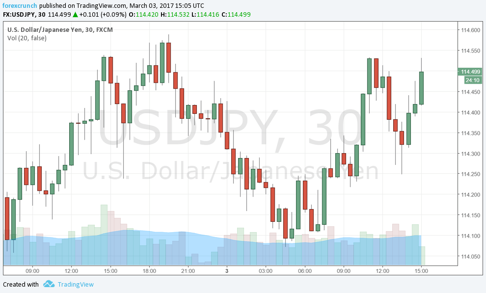 The dollar is slightly stronger. Here is how things look on the USD/JPY chart. The pair is drifting higher within the recent higher range.